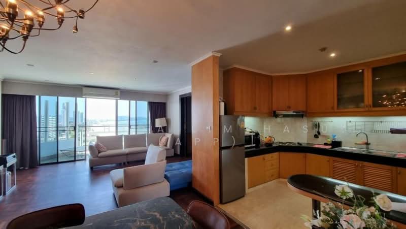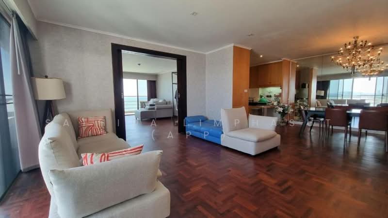 This is 3 Bedroom, 3 Bathroom Condo for Rent in Na Jomtien, offering 210 sqm of living area, located on the 16th floor, comes full furnished, building European kitchen, fitted cabinet wood, included electric hob, electric oven, fridge, dining table, air con, ledge living room set large comfortable sofa with flat screen TV. The view from the all of the rooms is spectacular and must be see. you can enjoyable with the City and Sea View, en-suit bathrooms with bath tub, built-in wardrobe and balcony.