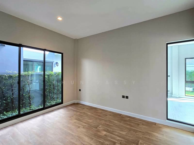 Land Area: 118.5 sq. wah, Usable Area: 439 sq. m. 4 Bedrooms, 5 Bathrooms, 1 Maid’s Room. Partly fitted. Includes 3 dedicated parking spaces, corner unit. Ideal for large family. Prime location project, just 1 kilometer from Suksawat Expressway, and only 350 meters to MRT Suksawat Station.
