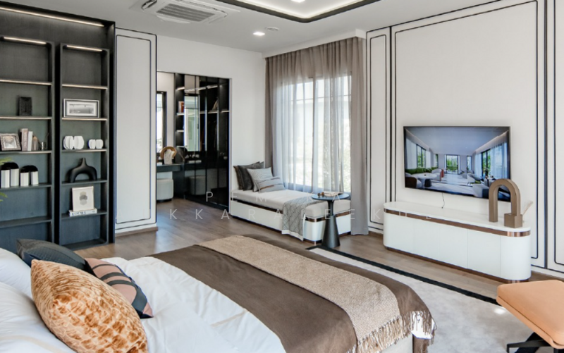 Grand Britannia Wongwaen – Pracha Uthit, a new detached house project from Britania, next to Kanchanaphisek Road. Near the expressway, conveniently connected to Sukhumvit Road. Complete with common areas, good atmosphere, large house style, 4 bedrooms, usable space complete with all functions. At a starting price of 18 – 25 million baht.