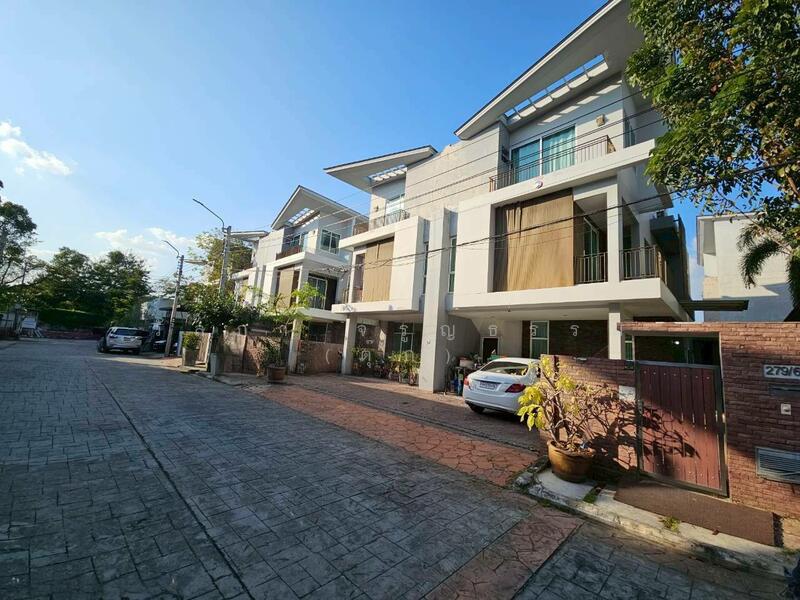 Luxury Living: 3-Storey Twin House at Grand I-Design Vibhavadi for rent. Located directly on Vibhavadi Rangsit Road. Fully furnished with air conditioning in every room, remote gate, and spacious living area. Rental Price: 35,000 THB/month.