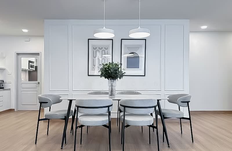 -Elegant Modern Classic interior with soft white tones and warm wood flooring
