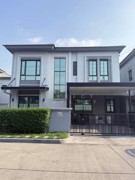 3 ห้องนอน 4 ห้องน้ำ มีห้องเก็บของใต้บันได ห้องนั่งเล่น โซนครัว สนามหญ้า และที่จอดรถ 2 คัน