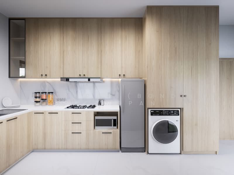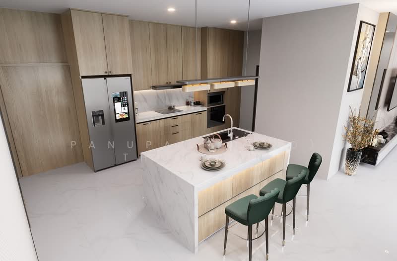Situated on a 151 SQW. plot, the 335 SQM home features 3 spacious bedrooms and 4 modern bathrooms, including a private shower room by the pool. The open-plan layout connects a bright living and dining area to a sleek European kitchen with premium appliances. For added versatility, a separate Thai kitchen and laundry area are included.