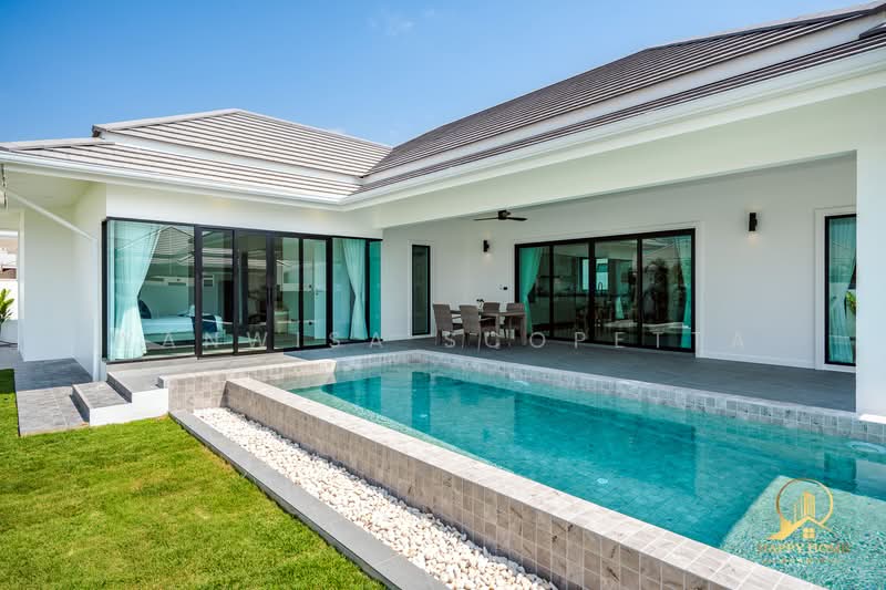 Experience peaceful tropical living in this modern private pool villa located in Hua Hin Soi 112, only 15 minutes from Hua Hin town. Positioned between Hua Hin and Pranburi, this exclusive development offers a quiet natural environment with beautiful mountain views and only 9 private plots, providing privacy and a relaxed lifestyle.
