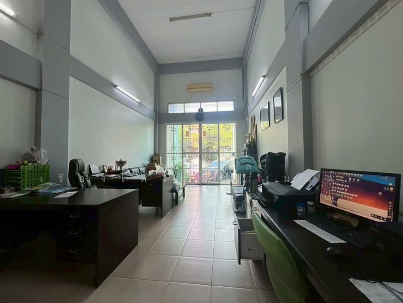 -ชั้น 1 มี 1 ห้องโถงใหญ่ 1 ห้องทำงาน 1 ห้องน้ำ 1 แอร์ พื้นปูกระเบื้อง เพดานสูง 6 เมตร