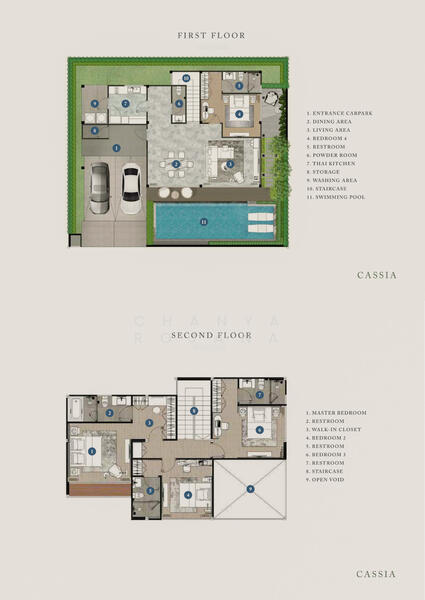 Highland Park Pool Villas Pattaya, a 2-storey detached house project with a private swimming pool for each unit, is situated in a tranquil yet conveniently accessible location. Developed by Habitat Villa Company Limited, a subsidiary of the Habitat Group. the project spans a total area of 81,150 square metres, featuring 65 units in Phase 1. The house occupies a land area of 244-608 square metres, with living areas ranging from 282-375 square metres. The houses are designed with 4 bedrooms and 5 bathrooms and the entire project is expected to be completed in 2024. The project adopts a freehold ownership structure and comes with various amenities including a clubhouse, swimming pool, fitness room, public park and standard security systems. The project is located in Huay Yai Subdistrict, offering a peaceful atmosphere while remaining within 15 kilometres of key destinations. These include Central Festival Pattaya Beach, Central Marina, King Power Pattaya, Makro South Pattaya, Thammasat University Pattaya Campus, Jomtien Hospital and Bangkok Hospital Pattaya. In terms of convenient transportation, residents have 3 main routes connecting to surrounding areas. These routes include the Liap Thang Rot Fai Road, approximately 6.4 kilometres from the project; Sukhumvit Road, about 7 kilometres away and Pattaya-Map Ta Phut Road, approximately 9 kilometres away. Highland Park Pool Villas Pattaya is a project featuring pool villa residences with spacious common areas that include swimming pools and a water park. Residents can enjoy private relaxation with their families at home or join neighbours in the project's communal spaces for shared leisure and recreation. In addition, the interior of the house is designed with a sitting room or guest room featuring a Double Volume ceiling, along with clear glass walls that extend to the ceiling for expansive views with abundant natural light. Importantly, this project incorporates a blend of modern Thai styles, enhancing the external appearance with the installation of a wooden-like façade using closely spaced materials resembling arranged wooden slats that act as sunshades. The house designs within the project include 2 variations: Cassia Pool Villa: This unit, with the house occupies a land area of 244-488 square metres, a living area of 282 square metres, is designed to accommodate 4 x bedrooms, 5 x bathrooms, 1 x private swimming pool with a length of 8 metres and 2 x parking spaces. Rosewood Grand Villa: This unit, with the house occupies a land area of 304-608 square metres, a living area of 375 square metres, is designed to accommodate 4 x bedrooms, 5 x bathrooms, 1 x maid's room, 1 x private swimming pool with a length of 10 metres and 3 x parking spaces. The Highland Park Pool Villas Pattaya project is located in Huay Yai Subdistrict, Bang Lamung District, Chonburi province. To reach the project, you can start your journey from Sukhumvit Road near Big C, South Pattaya, heading towards Sattahip district. After traveling for approximately 1.6 kilometres, make a left turn into Nong Krabok Alley. Continue for another 5.1 kilometres, then make a right turn into Thung Klom-Tanman Alley. Continuing for another 3 kilometres, you will find the project sign on the right-hand side. For those coming from other routes, key landmarks include: Aiyakan Najomtien Police Station intersection: 8.8 kilometres from the project. Jomtien Beach Intersection: 9.8 kilometres from the project. South Pattaya Intersection: 12.3 kilometres from the project. Project entrance: The Project Entrance design with a modern Thai style gate booth resembling brown wood, is positioned between the entrance and exit pathways of the project. In the middle, stands a guard post manned with security personnel and equipped with CCTV cameras. Residents utilize the Keycard Access system to pass swiftly through the automatic barrier. External individuals need to contact the staff for recording information and card exchange. Clubhouse: Located within the project, the Clubhouse is a single-storey building with a brown, wood-patterned exterior. Inside, it features a Double Volume high ceiling, highlighted by clear glass walls, allowing natural light to illuminate the space. Additionally, it connects to areas such as the fitness room, a lobby for guest reception, a multipurpose room and a children's room. Swimming pool: Located outside the clubhouse building, the pool area resembles a large water park set amongst lush trees in the serene atmosphere of resort-like surroundings. Multiple pool options are available, including a lap pool with a length of approximately 20 metres, a shallow pool, a poolside bar, a children's pool and a jacuzzi. Fitness room: Located within the Clubhouse building, the fitness room features clear glass walls, allowing residents to enjoy views of the project surroundings in all directions. The room is fully equipped with a comprehensive range of exercise equipment. Public garden: A green space surrounding the Clubhouse building, featuring a grass-covered area adorned with shrubs and large trees. The area provides various activity spaces such as a playground, open-air activity area, barbecue area with seating, garden-viewing walkways, relaxation seating areas and a jogging track. Security system: Keycard access, CCTV coverage, Nano Germ X technology to eliminate airborne pathogens and 24/7 personnel ensure constant security surveillance. Highland Park Pool Villas Pattaya is located in a tranquil and private setting. There are no shops or restaurants in the immediate vicinity of the project. However, within the project, there are dining and beverage services available. Additionally, there are large convenience facilities not far from the project, details of which are as follows: Talat Nam 4 Phak Train Station: 7.8 kilometres from the project. Pattaya Nakhonchai Air Bus Station: 11.8 kilometres from the project. Pattaya Bus Station: 14.1 kilometres from the project. Bali Hai Pier: 