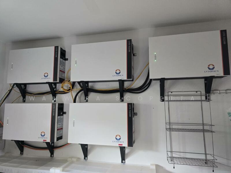 The villa is equipped with a hybrid solar power system, solar hot water, water purification system, underground water tank, air-conditioning, ceiling fans throughout, CCTV, alarm system, motion sensors, optical fiber internet, mosquito nets, and an inbuilt pest-control system. Additional features include a laundry room, storage room, and covered parking for two cars.