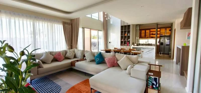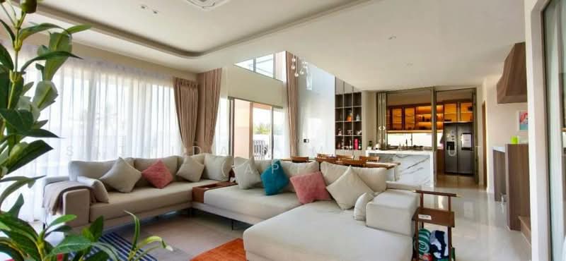 This stunning two-story house offers 4 bedrooms and 4 bathrooms for Sale in Nong Pla Lai. Is Available in Thai Name Ownership, sitting on 400 Sqm of land plot size, 273 Sqm of usable area. Comes fully furnished, European kitchen, full equipped with premium appliances, dining table. A spacious open plan living hall featuring stylish recessed ceilings with LED cove lighting. A flexible space on the ground floor that can be easily customized into a home office, the second floor hosts grand bedtooms, including a master suite with a private en-suite bathroom. Step outside to your privte swimming pool, surrounder by a well-sized lush garden that offers both greenery and private.