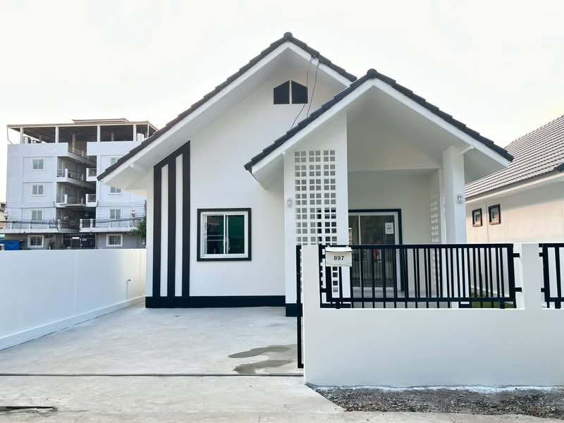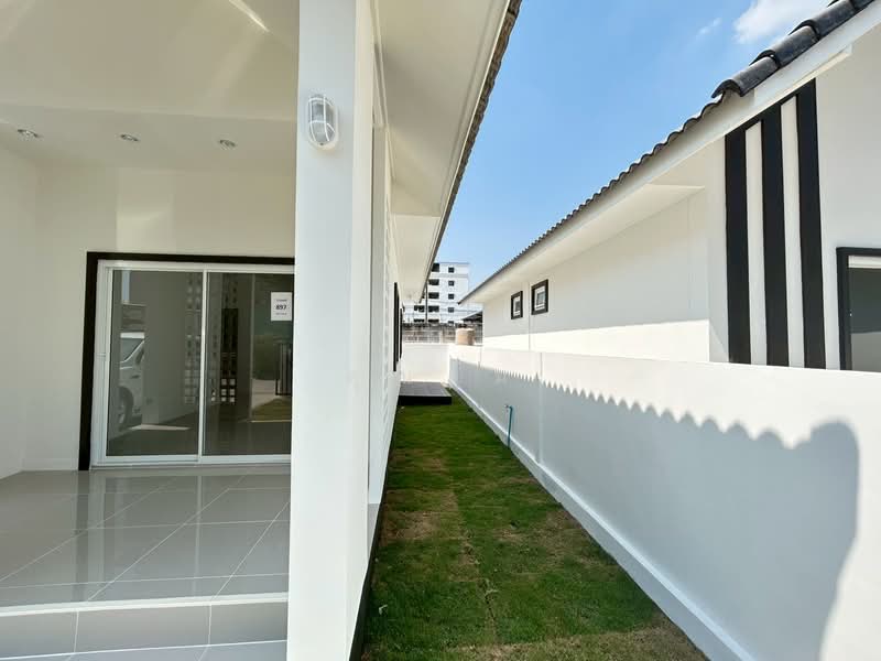 2 ห้องนอน 2 ห้องน้ำ จอดรถในบ้านได้ 2 คัน มีบริเวณสวนในบ้าน