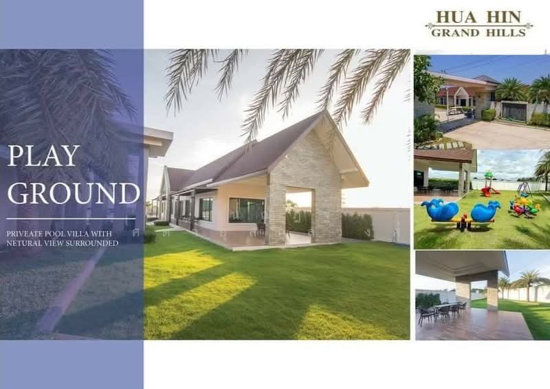 หัวหิน แกรนด์ ฮิลล์ (Hua Hin Grand Hills) โครงการบ้านแบบพูลวิลล่าชั้นเดียวพร้อมสระว่ายน้ำส่วนตัว บนถนนห้วยมงคลที่แวดล้อมไปด้วยธรรมชาติและภูเขาอันอุดมสมบูรณ์ เป็นผลงานการพัฒนาโครงการของบริษัท ประจวบอินเตอร์เทรด จำกัด โดยโครงการนี้มีเนื้อที่ทั้งหมด 40 ไร่ 1 งาน 67 ตารางวา จำนวน 89 ยูนิต เนื้อที่บ้านเริ่มต้น 80 ตารางวา พื้นที่ใช้สอยเริ่มต้น 320-480 ตารางเมตร ขนาด 2-3 ห้องนอน 2-3 ห้องน้ำ ก่อสร้างแล้วเสร็จในปี 2563 และมีลักษณะการถือครองแบบขายขาด นอกจากสิ่งอำนวยความสะดวกส่วนตัวภายในบ้านที่อยู่อาศัยแล้ว ยังมีพื้นที่ส่วนกลางของโครงการที่ให้บริการทั้ง คลับเฮ้าส์, สระว่ายน้ำส่วนกลาง, ห้องออกกำลังกาย และสนามเด็กเล่น สำหรับทุกครอบครัวได้ทำกิจกรรมร่วมกัน หรือจะจัดงานปาร์ตี้บนพื้นที่สวนของคลับเฮ้าส์ ทางโครงการก็มีอุปกรณ์ต่าง ๆ ให้บริการ ส่วนบริเวณโดยรอบโครงการในรัศมีไม่เกิน 10 กิโลเมตร มีแหล่งอำนวยความสะดวกที่น่าสนใจ เช่น บิ๊กซี หัวหิน, บลูพอร์ต หัวหิน, สวนน้ำวานา นาวา หัวหิน, โรงเรียนนานาชาติหัวหิน และโรงพยาบาลหัวหิน 4 เป็นต้น ด้านการเดินทางทำเลที่ตั้งโครงการอยู่ห่างจากกรุงเทพมหานครประมาณ 200 กิโลเมตร สามารถใช้ถนนเพชรเกษมซึ่งเป็นถนนหลักสำหรับการเดินทางเข้าเมืองหลวง หรือจะใช้เดินทางเพื่อออกไปสู่จังหวัดอื่น ๆ ได้ หัวหิน แกรนด์ ฮิลล์ ใช้สไตล์โมเดิร์นเรียบง่ายสำหรับการออกแบบบ้านที่อยู่อาศัย เน้นคุมโทนด้วยสีขาว เพิ่มลูกเล่นด้วยวัสดุปิดผิวลายอิฐเล็กน้อย พร้อมเจาะช่องสำหรับใส่กระจกเพื่อรับแสง และติดตั้งระบบหน้าต่างกระจกแบบบานเลื่อน พร้อมหลังคาทรงปันหยาสีเข้ม รับกับบรรยากาศท่ามกลางขุนเขาและพื้นที่สีเขียวรอบโครงการ โดยการจัดวางผังของโครงการ เมื่อผ่านซุ้มประตูโครงการมาแล้วจะพบกับถนนหลักของโครงการมีความกว้าง 12 เมตร เมื่อมองตรงไปจะพบภูเขาอยู่บริเวณท้ายโครงการ ช่วยเพิ่มอากาศบริสุทธิ์และสร้างช่องลมธรรมชาติให้แก่ผู้อยู่อาศัย และแบบบ้านในโครงการมีดังต่อไปนี้ เนื้อที่บ้านเริ่มต้น 80 ตารางวา พื้นที่ใช้สอย 178 ตารางเมตร ขนาด 2 ห้องนอน 2 ห้องน้ำ 1 ห้องรับแขก 1 ห้องครัว 1 สระว่ายน้ำ และ 2 ที่จอดรถ เนื้อที่บ้านเริ่มต้น 80 ตารางวา พื้นที่ใชสอย 254 ตารางเมตร ขนาด 3 ห้องนอน 2 ห้องน้ำ 1 ห้องรับแขก 1 ห้องครัว 1 สระว่ายน้ำ และ 2 ที่จอดรถ เนื้อที่บ้านเริ่มต้น 80 ตารางวา พื้นที่ใช้สอย 245 ตารางเมตร ขนาด 3 ห้องนอน 3 ห้องน้ำ 1 ห้องรับแขก 1 ห้องครัว 1 สระว่ายน้ำ และ 2 ที่จอดรถ เนื้อที่บ้านเริ่มต้น 80 ตารางวา พื้นที่ใช้สอย 271 ตารางเมตร ขนาด 3 ห้องนอน 2 ห้องน้ำ 1 ห้องรับแขก 1 ห้อง