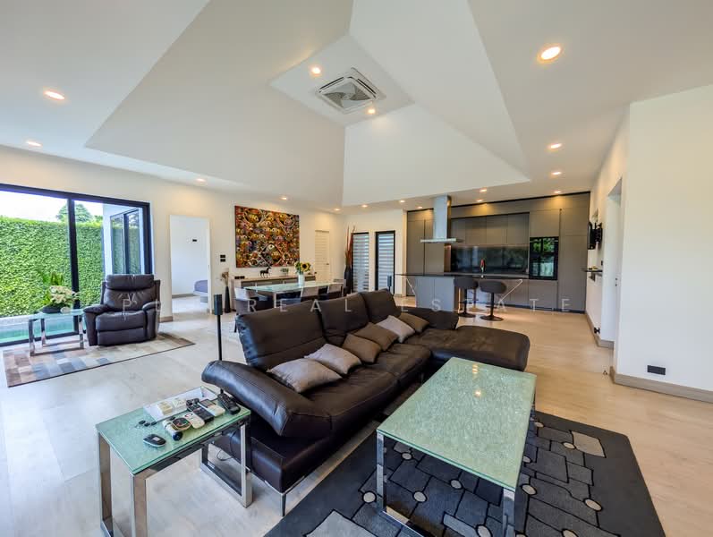 The property is a single-storey pool villa set on a land size of 130 square wah. The layout is spacious and designed for comfortable living. In addition, the house features a large garden area, which provides extra outdoor space for relaxation and family activities.