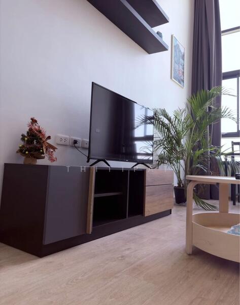 Built-in: Kitchen with shelves and hanging cabinets, large wardrobe, TV stand, curtains 17,000 THB