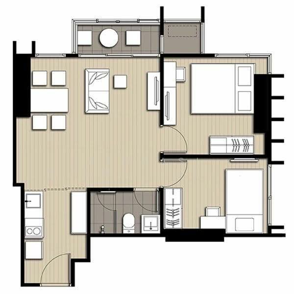 Fully furnished 2 bedrooms, 1 bathroom condo for rent with a floorsize of 50 squaremeters, located on the 12A floor, at Ideo Q