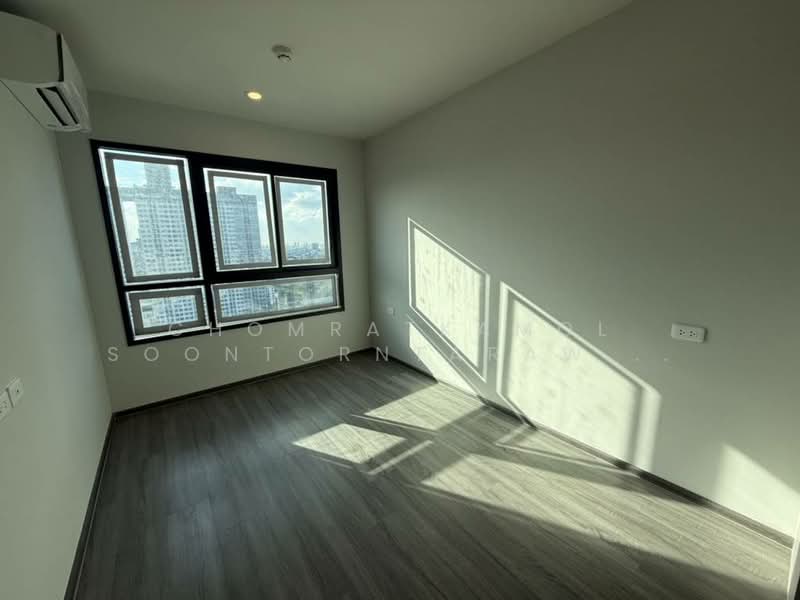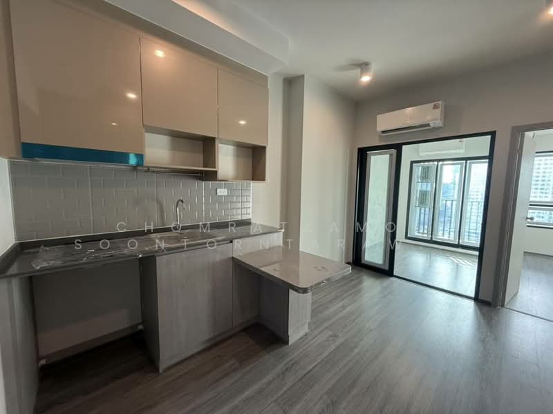 This modern 1-bedroom condo offers a bright 35.07 square meter living space in Ideo Ramkamhaeng-Lamsali Station. It is a new development in Hua Mak, Bang Kapi, Bangkok. The unit sits on a high floor level 21 with a panoramic city skyline view. Ownership is freehold and the condo is presented unfurnished for flexible interior design.