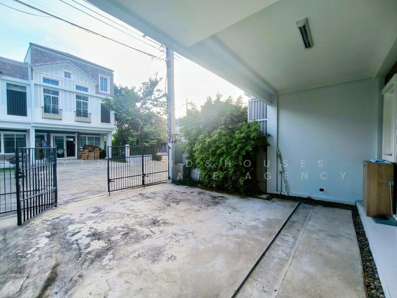 For rent: 2-story townhome near Mega Bangna, best location in the area, Indy 2 Bangna-Ramkhamhaeng 2, the front of the house faces south, the back of the house has an awning and artificial grass, beautiful house, clean, fully furnished, ready to move in.
