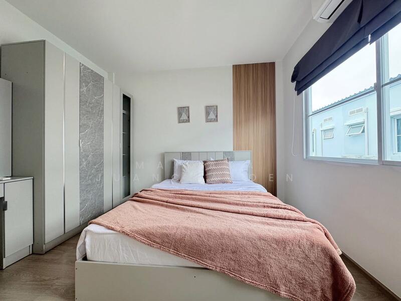 - ห้องนอนเล็ก: เตียง5 ฟุต + ตู้เสื้อผ้า