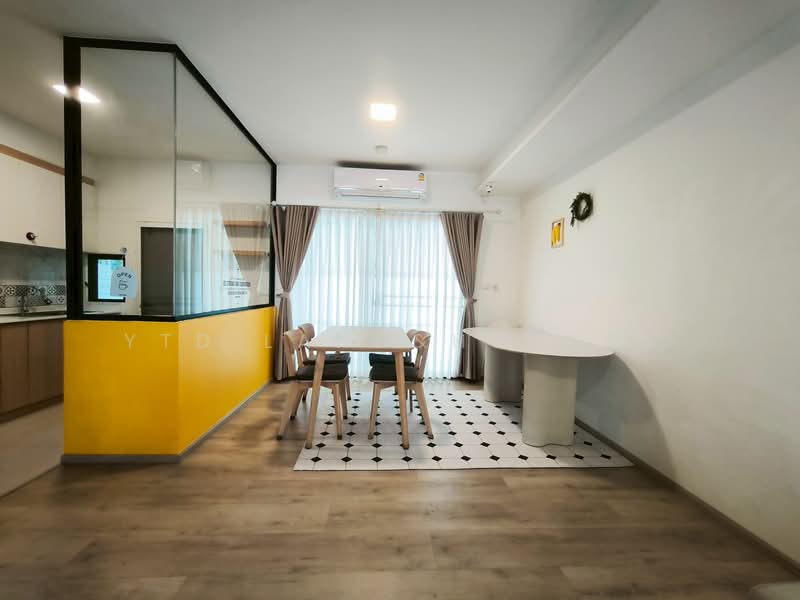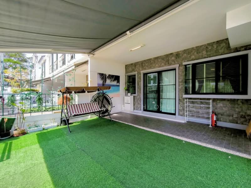 2-storey townhome for rent near Mega Bangna , Greatest location in this area Indy 5 Bangna KM.7, front facing south . Corner house with mezzanine floor. There is an electric awning in front of the house. There is an area on the side and back of the house with tiles around the house. Fully equipped with furniture.
