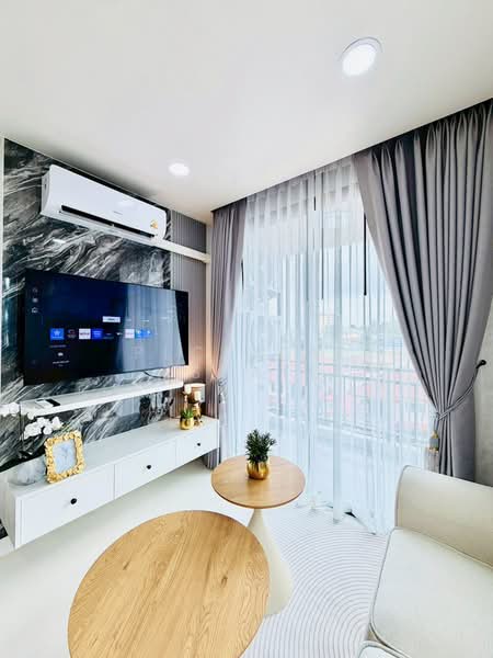 The unit features one bedroom and one bathroom with a usable area of 35 sq.m. In addition, the condo is located on the 5th floor as a corner unit, allowing more natural light and extra privacy. The property has been newly decorated and comes fully furnished with Samsung appliances, premium curtains, and wallpaper. Consequently, this residence provides a modern and comfortable living space ready for immediate move-in.