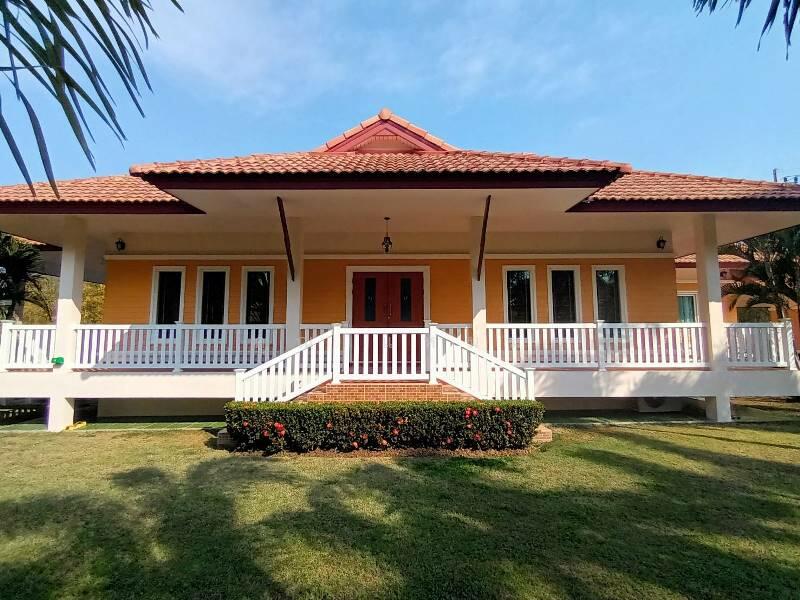 ให้เช่าบ้านชั้นเดียวตกแต่งครบครัน พร้อมที่จอดรถสองคัน ห้องเก็บของ เนื้อที่ 200 ตารางวา พื้นที่ใช้สอย 180 ตารางเมตร มี 3 ห้องนอน 3 ห้องน้ำ เครื่องทำน้ำอุ่น 4 เครื่อง ห้องนั่งเล่น/รับประทานอาหารขนาดใหญ่ ห้องครัวพร้อมอุปกรณ์ครบครัน เครื่องปรับอากาศ 5 เครื่อง เครื่องซักผ้า ประตูและหน้าต่าง uPVC ผ้าม่าน พัดลมเพดาน เตาผิง ไฟ LED สวนขนาดใหญ่ มีต้นปาล์ม ศาลาริมคลองไว้นั่งเล่น วิวภูเขา ให้เช่าราคา 23,000 บาทต่อเดือน