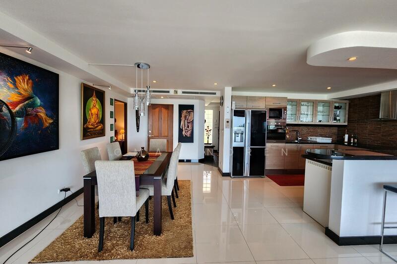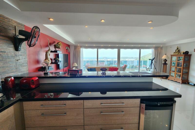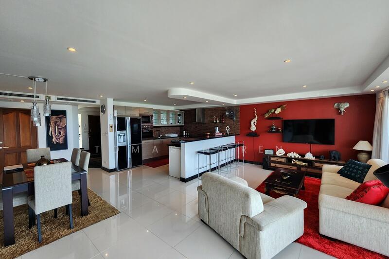 This is a large 2 bedroom sea view apartment of 137 Sqm located on the top floor in the Kata Ocean view development. The main living area is very spacious and it has a very nice imported fully equipped kitchen. The two bedrooms are of good size with sea views from the master bedroom. There is also a walk in closet and two bathrooms. The apartments terrace is of good size and is accessible both from the living room and the bedroom and offers panoramic sea views over Kata Bay. The apartment is sold fully furnished and ready to move in.