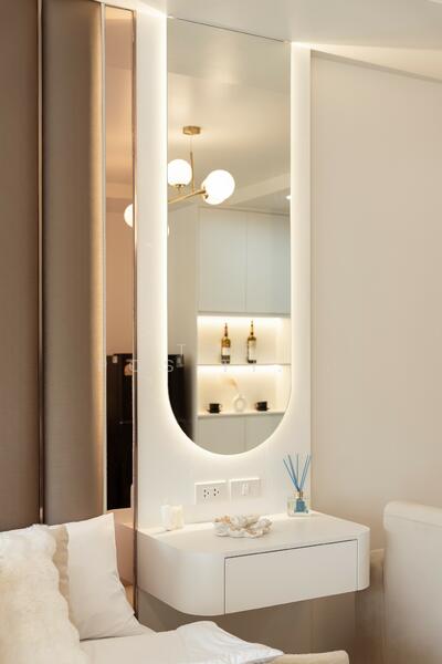 • LED lighting at kitchen counter, vanity mirror & bathroom mirror