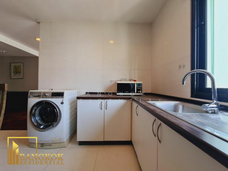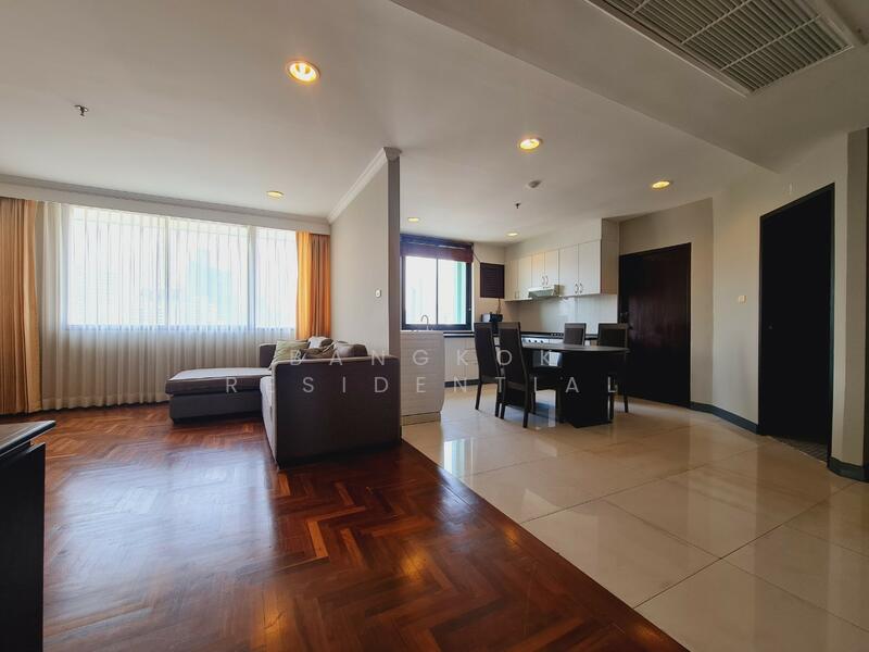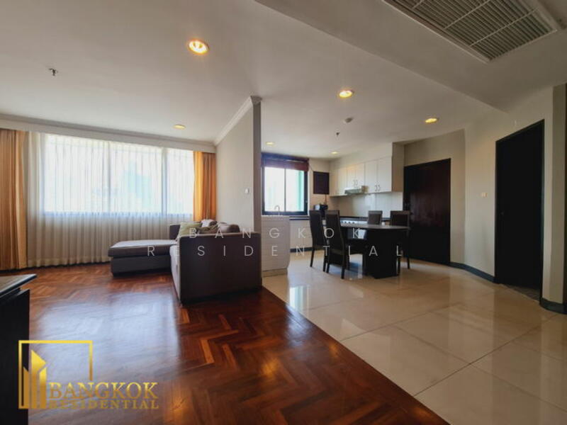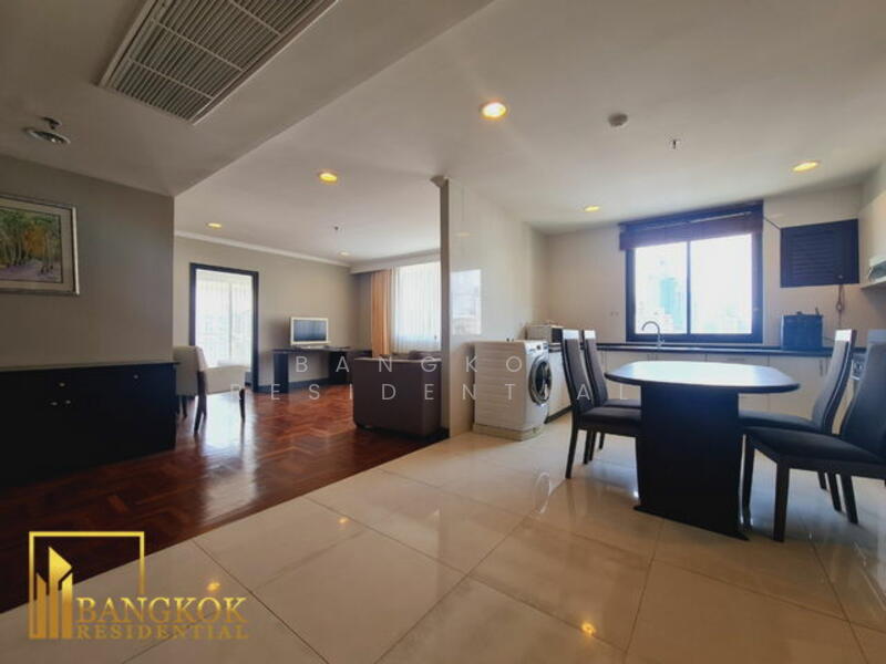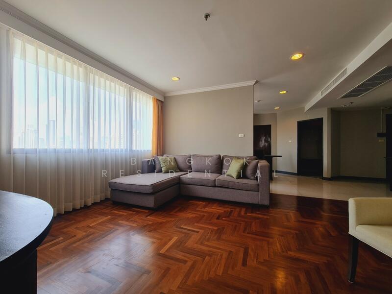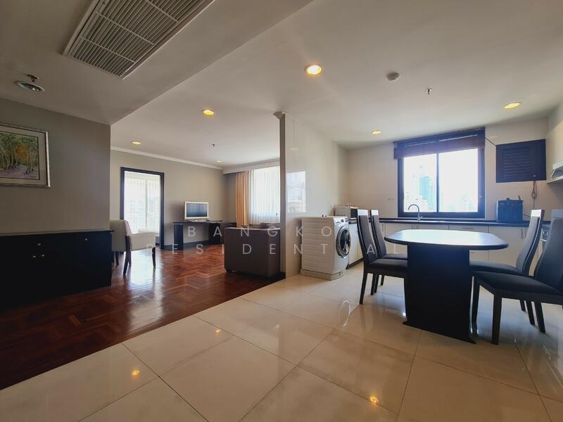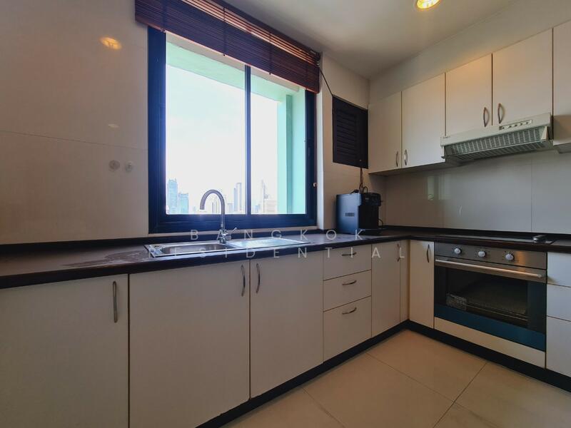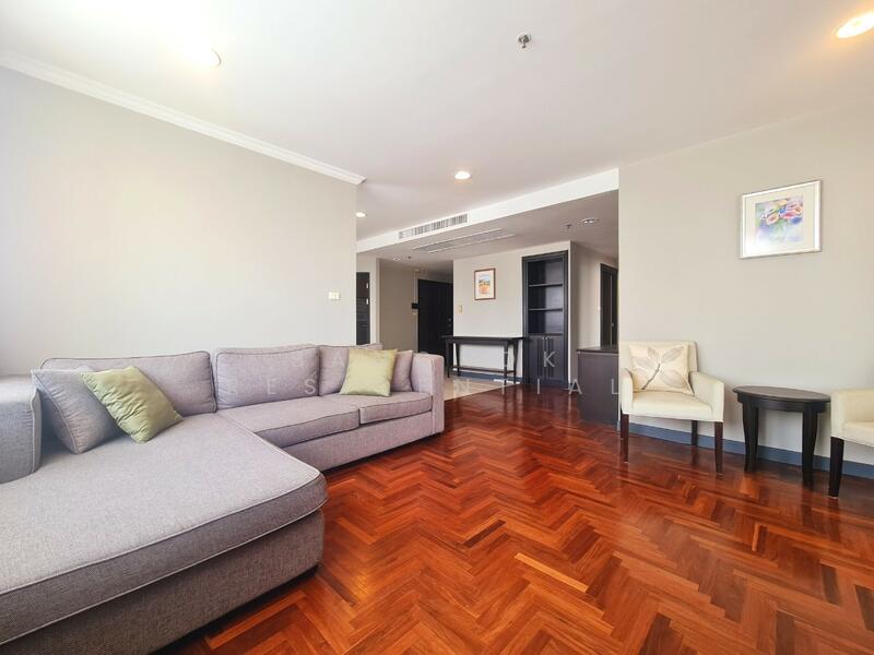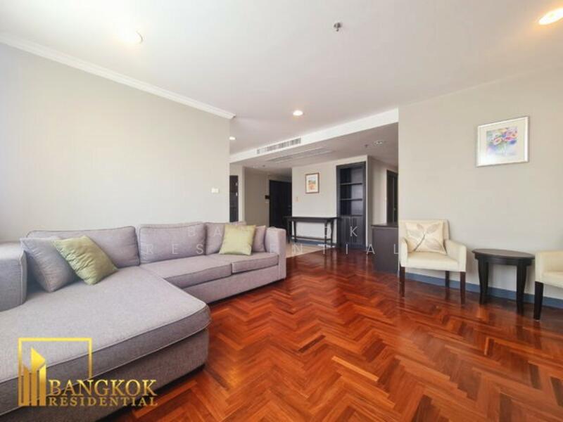This bright and spacious 3 bedroom, 2 bathroom condo at Lake Green is available for rent at 60,000 Baht per month. Located on a high floor, the unit offers 136 square meters of fully furnished living space with beautiful views overlooking the greenery of Benjakitti Park.