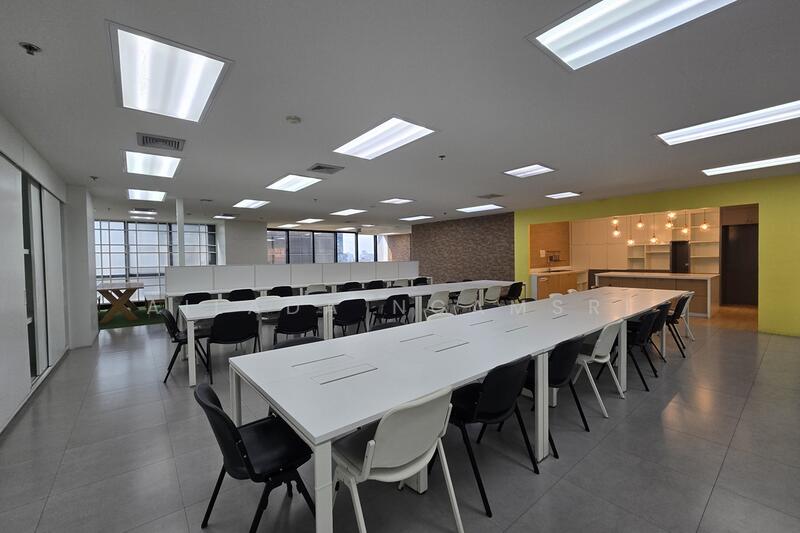 Large furnished office space for rent in Asoke. This 672.25 sqm furnished office space is located on a lower floor and offers a practical layout with separate male and female restrooms on both sides of the office.