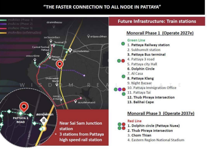 ●Only 3 stops from Pattaya High-Speed Rail Station