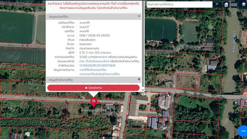 Land For Sale is located at ลำลูกกา 196, Khlong Sibsong, Nong Chok, Bangkok Khlong Sibsong Nong Chok Bangkok.