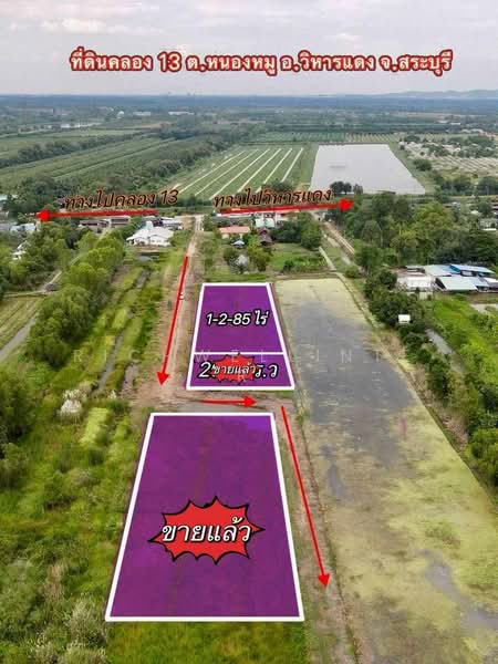 Land for sale in Nong Moo, 1 rai, Khlong 13, near road 1052 (1 km), Wiang Daeng District., Saraburi