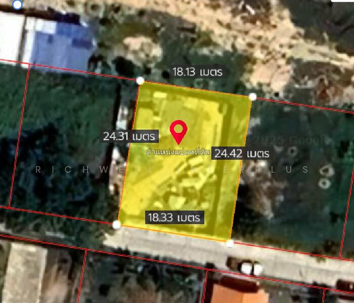 Land for sale in Phla, 100 sq.wa., already filled and leveled. Located in Municipality 6, Soi 13, behind Eastern Star Golf Course, near Phla Beach (3 km). Ban Chang District, Rayong.