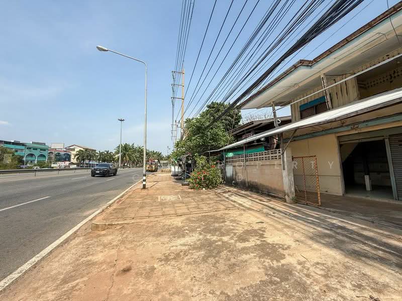 Land in Sriracha, adjacent to Sukhumvit Road, with existing buildings.