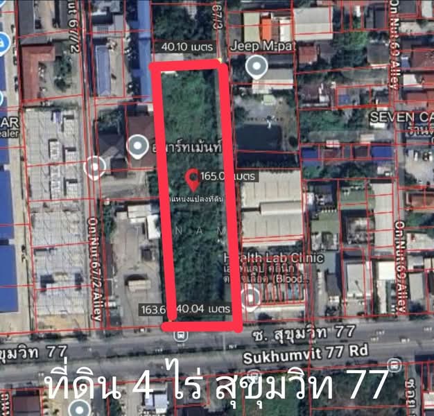 next to Sukhumvit 77 Road, width 40 meters, length 165 meters