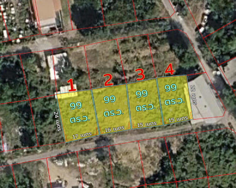- Plot 4: 99 sq.wa, 15 meters wide, 22 meters deep 24 meters