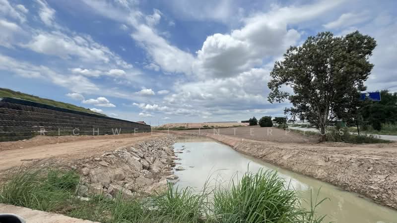 Land characteristics: next to a long stream, wide frontage on a paved road next to Amata Industrial Estate, suitable for warehouses, factories