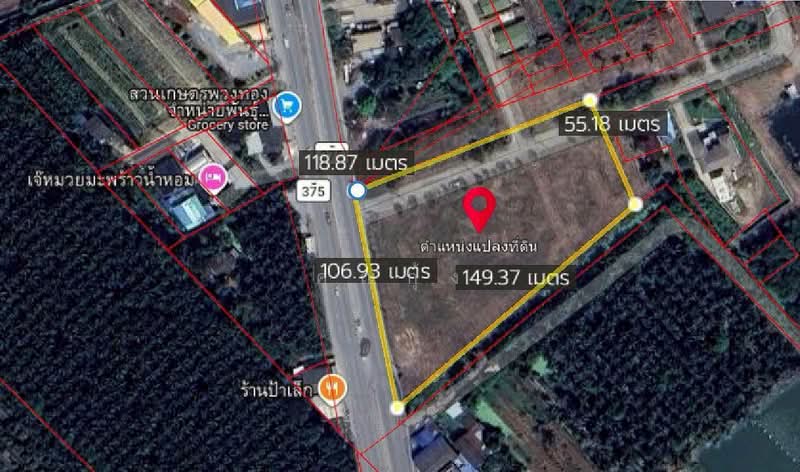 หน้ากว้างติดถนนถึง 107ม. ลึก119ม. ทรงสวย ทำเลดี