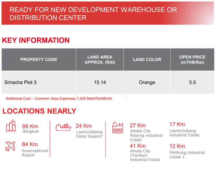 Estate and Laemchabang Port. The project is suitable for
