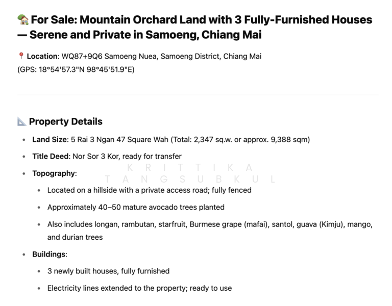 For Sale: Mountain Orchard Land with 3 Fully-Furnished Houses