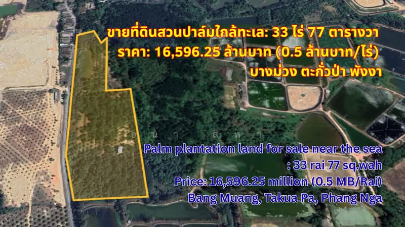 The sale price of this unit at Large plot of land for sale near the sea, Bang Muang, Takua Pa, Phang Nga. is ฿16,596,250.