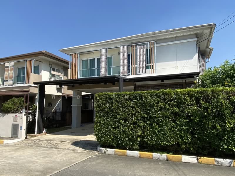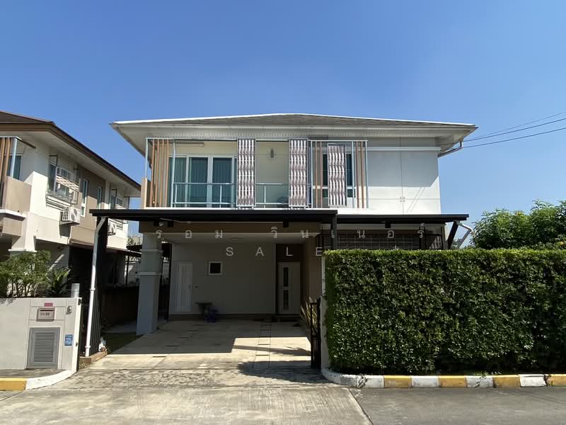 Beautiful 2-storey detached house located in Sukhumvit Soi 27 (Soi Boonsiri), Samut Prakan. Corner unit with spacious land and private atmosphere. Convenient location near BTS Royal Thai Naval Academy Station, only about 2 km away.