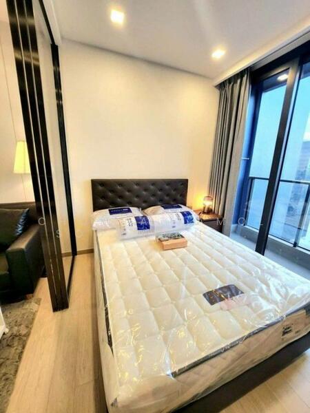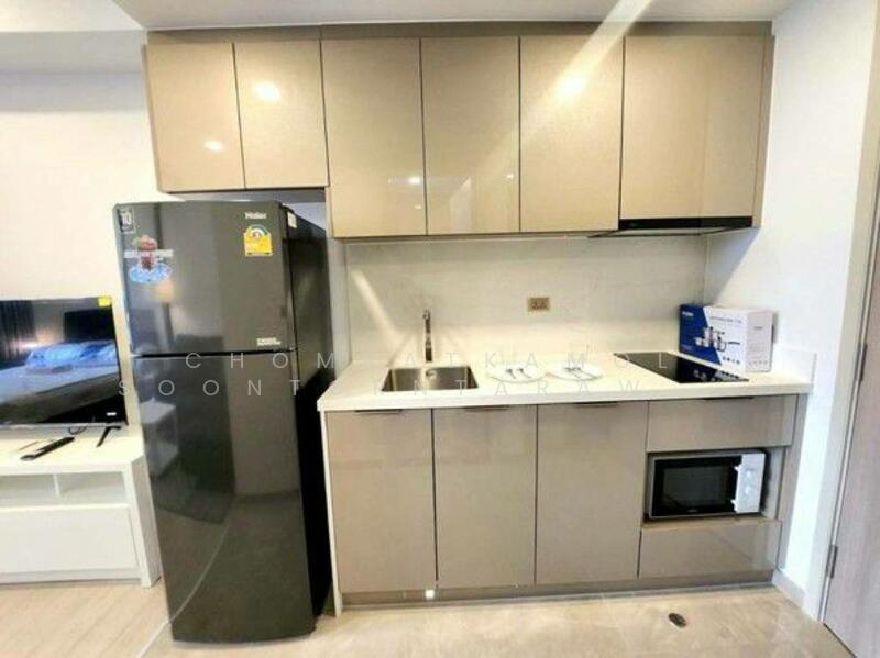 This fully furnished studio condo offers a modern city lifestyle on the 37th floor of One 9 Five Asoke - Rama 9 in Huai Khwang, Bangkok. The 25.84 square meters interior presents an efficient open-plan layout with a clear separation between living and sleeping zones. Floor-to-ceiling windows provide strong natural light and an impressive skyline view.