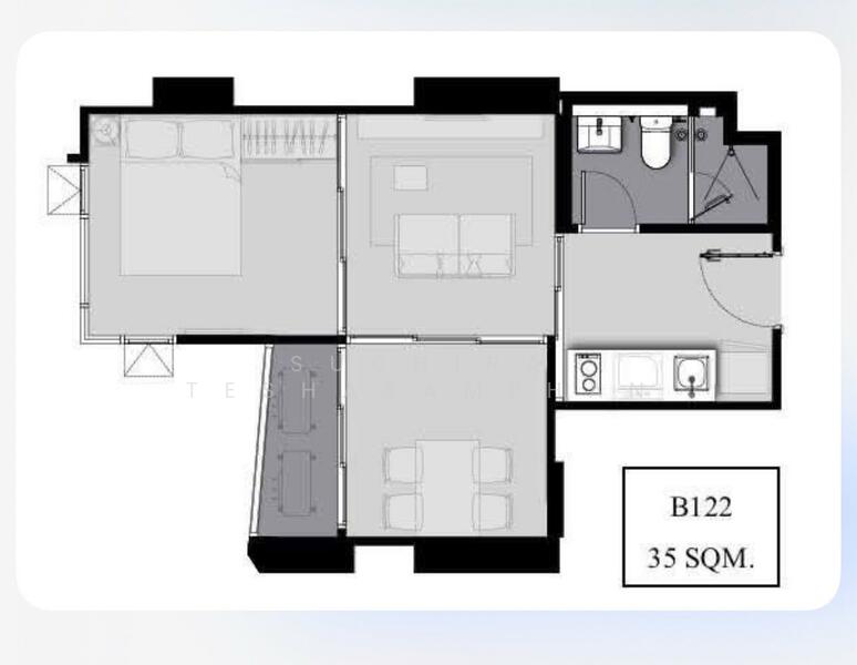 Fully furnished 1 bedroom, 1 bathroom condo for sale with a floorsize of 35 squaremeters, located on the 2x floor, at Life Ladprao