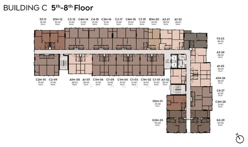Floor size of this unit at Life Ratchada - Rama 9 is 50 sqm.