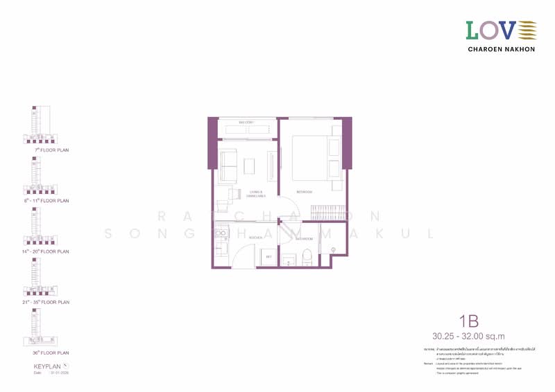 1 bedroom, 1 bathroom condo for sale with a floorsize of 32 squaremeters, located on the 8th floor, at Love Charoen Nakhon