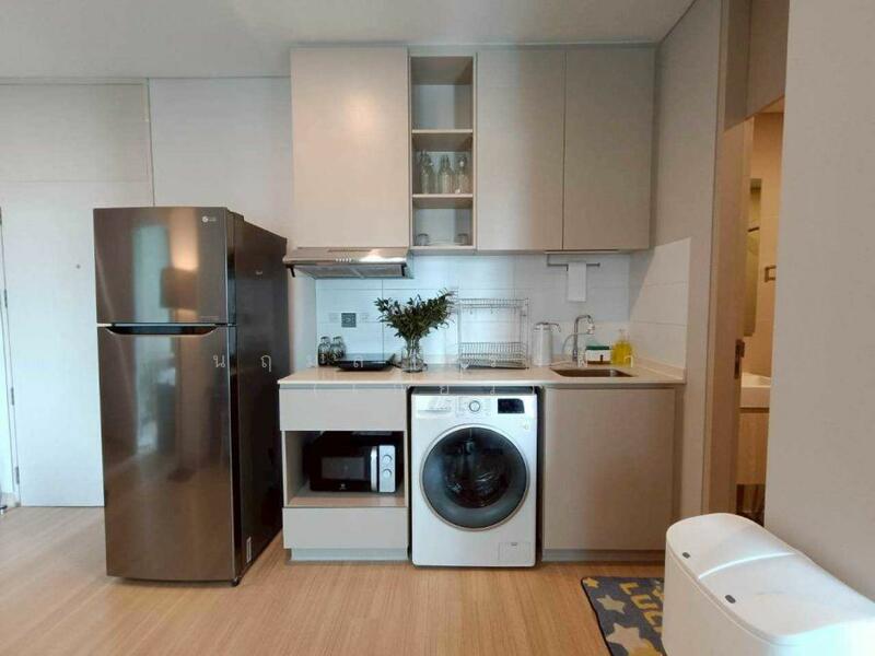 • ห้องนั่งเล่น + พื้นที่แพนทรี พร้อมตู้เย็น & ไมโครเวฟ