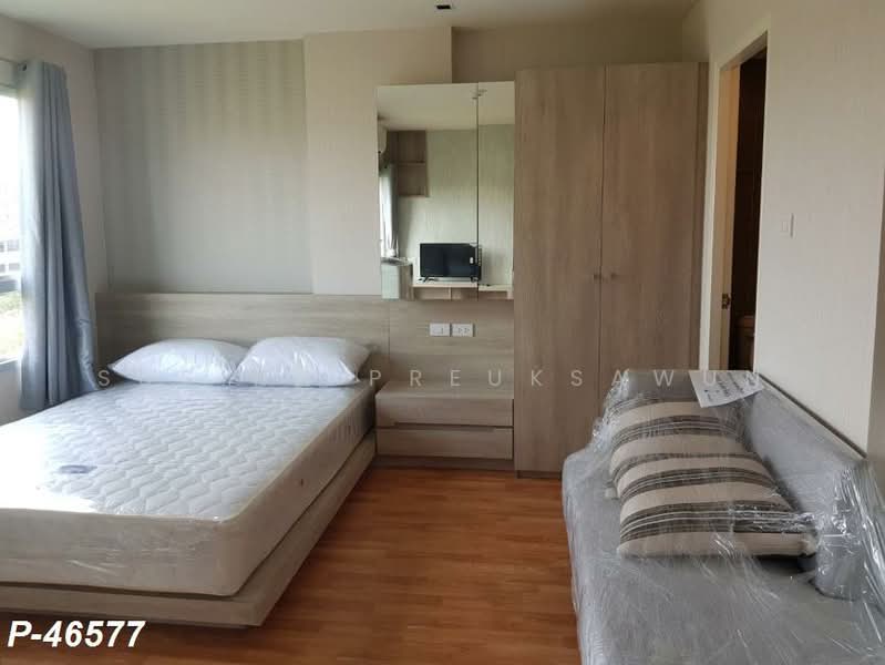 P-46577 Ready to move in! Experience a beautiful garden view studio unit in Lumpini Ville Sukhumvit 76-Bearing Station 2. This 24 sq.m. unit on the 4th floor is modernly furnished, complete with appliances: