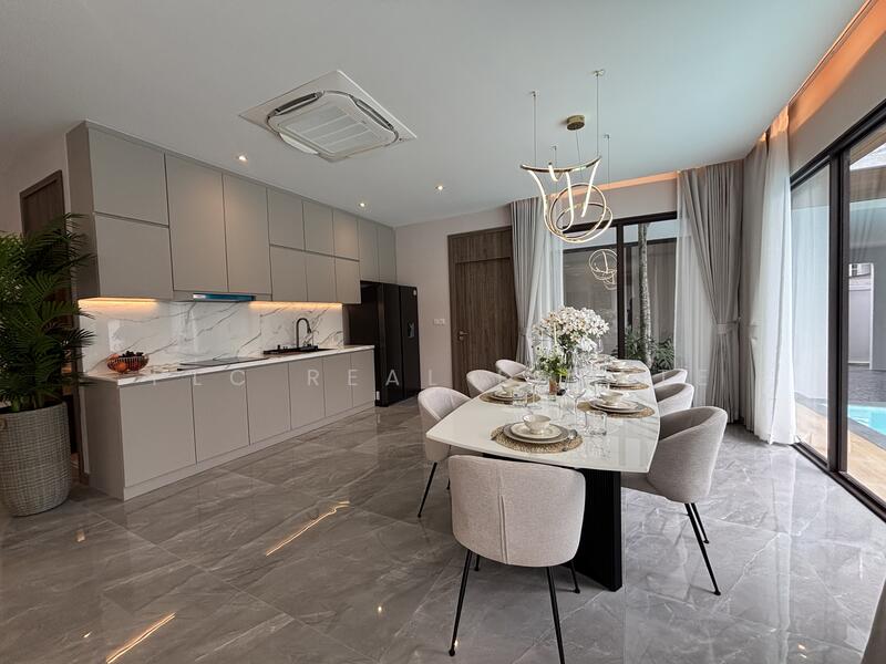 The villa features a spacious layout with generous living areas. In addition, the interior design focuses on comfort, openness, and natural light. Furthermore, the living and dining spaces connect smoothly, creating a perfect environment for family living and entertaining guests.