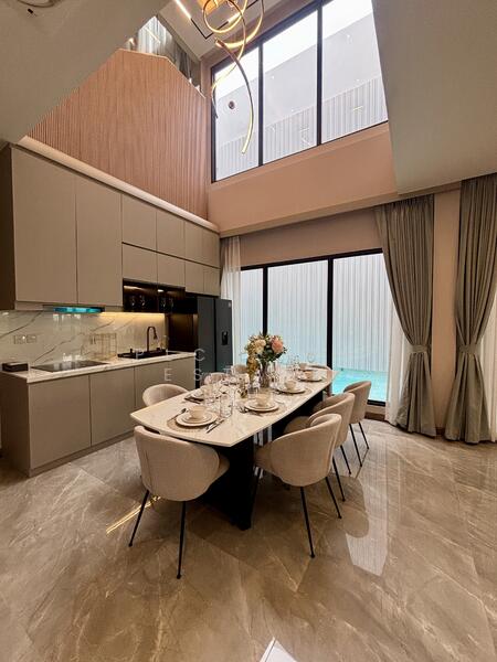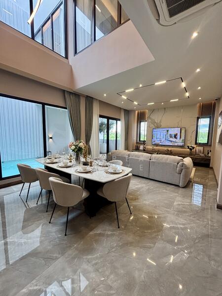 The villa offers a well planned layout with spacious living areas. In addition, the interior design emphasizes openness and natural light. Furthermore, the living and dining areas connect smoothly, making the space ideal for everyday living and entertaining.