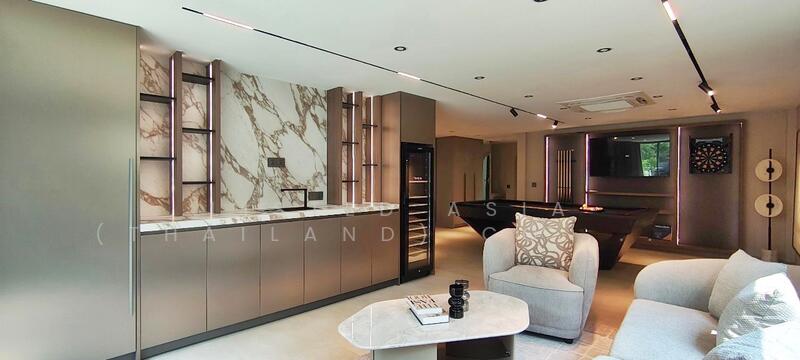 This luxury modern pool villa in Jomtien offers an exceptional living experience, featuring 4 fully furnished bedrooms and 5 bathrooms with high-quality materials and unique design solutions. The property sits on 416 Sqm of land plot size, with 311 Sqm of useable area. Additionally, there is 130 Sqm garden in front of the house, designated as a common area. Inside, the villa boasts a 50 sq. m. entertainment area complete with a pool table and bar, a modern kitchen with a dining space for 6-8 people, and a living room with soaring 6-meter-high ceilings. There is also a large outdoor kitchen equipped with 4 BBQ burners and a gas stove, a fully equipped laundry room with a washing machine and dryer, and an additional small storage room.