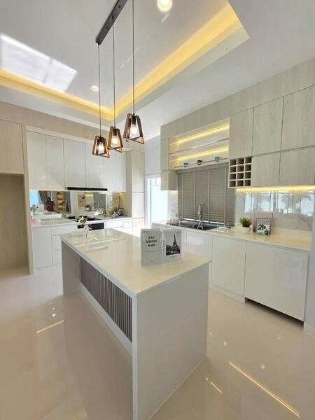 This villa features 3 spacious bedrooms and 2 modern bathrooms with built-in closets and air-conditioning. The European-style kitchen is beautifully fitted with cabinets and countertops, perfect for daily living or entertaining. The interior is fully decorated and ready for immediate move-in.